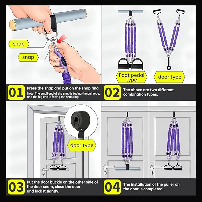 - ✅Save on Gym Fees-Use our multifunction resistance band foot plate set for whole body exercise. It includes 4pcs 25LB sports bands resistances, 1pc sturdy door anchor, 2pcs durable handles, 1pc ankle strap, 1pc handle, and 5pcs Loop Exercise Bands. If you're a full-time mother or have limited time, our sit up equipment and pull rope are suitable. The exercise bands are like a pocket gym. No need to worry about fitness level.