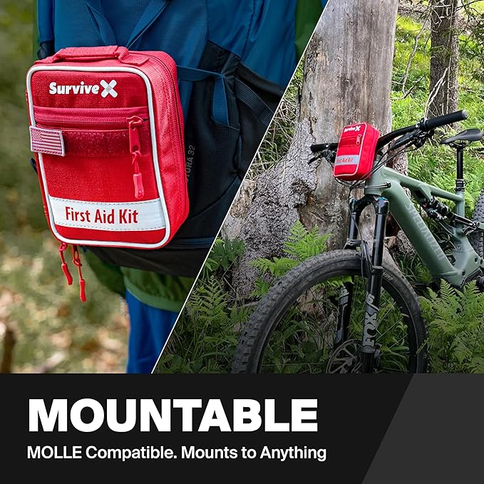 - MOUNTABLE AND MOLLE COMPATIBLE — Designed for versatility, this first aid kit features mounting options and MOLLE compatibility, allowing you to attach it to your backpack, vehicle, or wall. Keep your emergency supplies within easy reach, wherever your adventures take you.