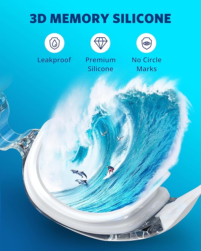 • Great Seal & No Leaking-The ergonomic design of swim goggles with high-quality silicone material ensures a close fit to different face shapes and never allows leakage. In addition, the flexible silicone frame and improved higher nose rest provide extreme comfort and will never hurt your nose or leave marks on your face.