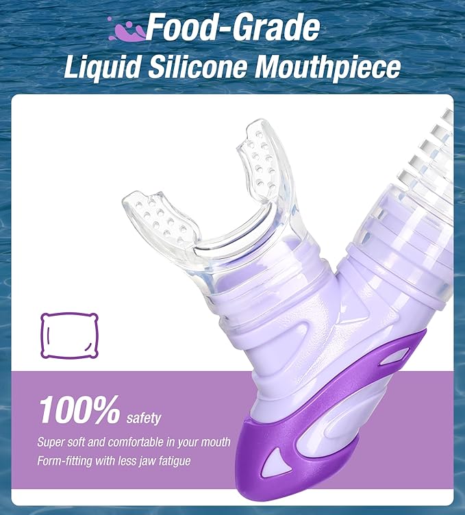 - Advanced top dry valve and splash guard: Aegend Dry snorkel profiled “paddle” dry top automatically closes when submerged, not allowing water entry. Even waves crash overhead, the splash-guard will prevent water from coming into the snorkel. Unlike the float ball valve which gets lodged easily by small sands or kinds of stuff, our new design valve won't be stuck, which give you comfortably breath.
