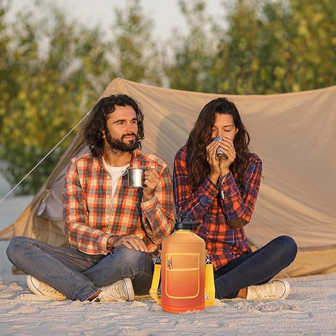 - VERSATILE AND STYLISH CARRIER BAG:The colorful water bottle carrier bag is designed to match the bottle's body, adding a touch of flair while providing practical functionality. The shoulder strap and carabiner make it easy to carry and hang, whether you're out on a hike or running errands. Plus, the small storage bag for your phone and a hook for keys make this bottle even more versatile.