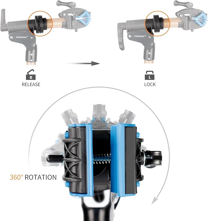 - ROTATABLE HEAD: The holding head clamp is 360-degree rotatable by turning the quick-release knob. The teeth and clamp are both well-made and heavy-duty. This bike stand could hold bikes up to 30Kg or 65LB at any angle after you well open the stand.