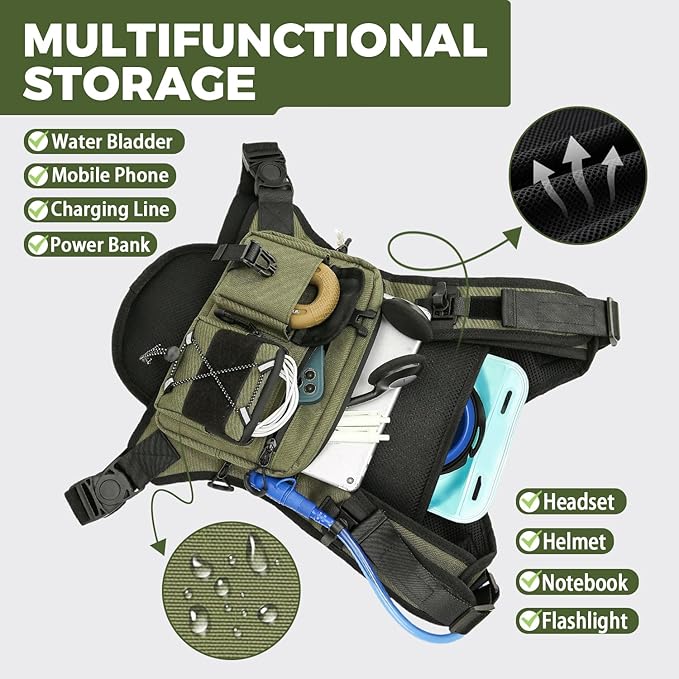 - 【Water Bladder System】Hydration chest bag Equipped with a dedicated 2.0L water bladder, the high quality hydration bladder is made of PEVA material and it is BPA-free. The hydration bladder guarantees that you have a constant supply of water on your journeys. The ergonomic design ensures easy sips, keeping your thirst quenched on the go.