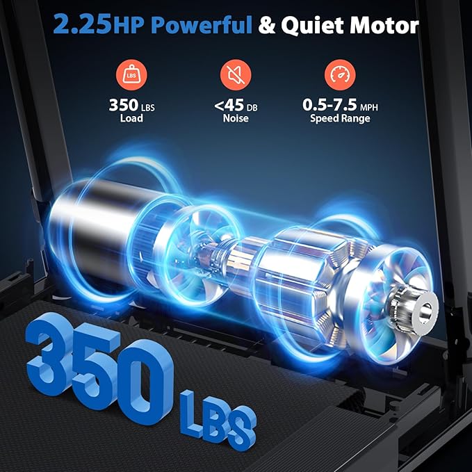 - 【Powerful, Functional & Entertaining】This treadmill for seniors walking with rails has a 2.25 HP motor, supports 350 lbs, and speed from 0.5 - 7.0 mph. It includes a desk for items like glasses, devices, or snacks; a cup holder for drinks; a phone holder for a mobile phone or iPad; and a Bluetooth Speaker for better workout vibes, making exercise more fun and engaging.