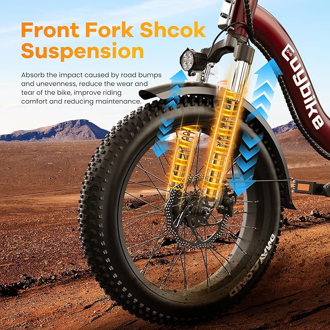 - 【Superior Front Suspension and Dual Disc Brakes】: The ebikes for adults features front fork suspension, absorb any bumps or shocks encountered on the road, providing a smooth and comfortable ride. 180mm Dual Disc Brakes enables the ebike to stop quickly and smoothly, shortening the braking distance even on a wet road. In combination with 7-speed gear, discover more flexibility of quick climbing response and experience the ultimate electric mountain bike riding experience!