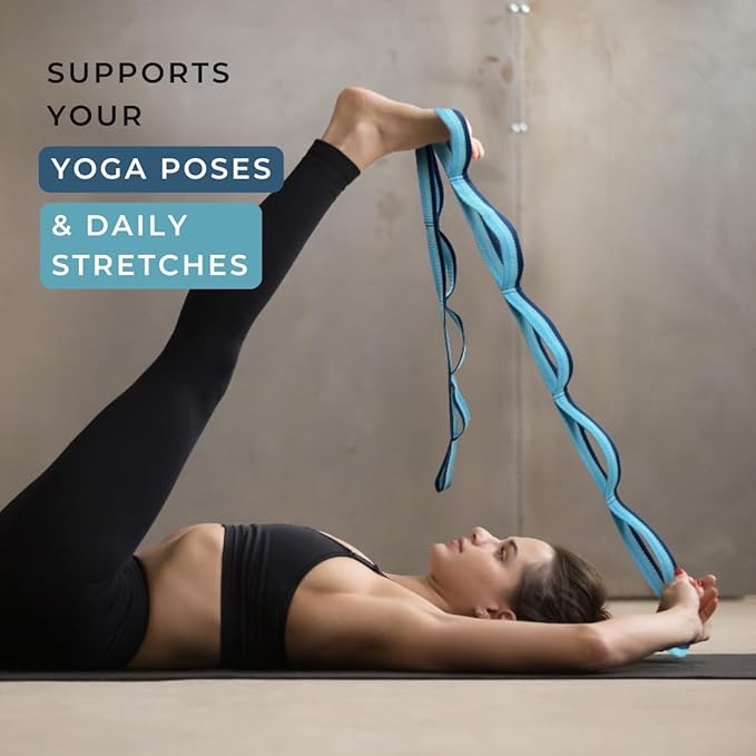 California Yoga Strap | Yoga Belt with Loops | 12 Multi Loop & Non-Elastic | Stretching Strap | Gym Workout & Exercise Bands | Physical Therapy | Improves Sitting Posture for Women & Men