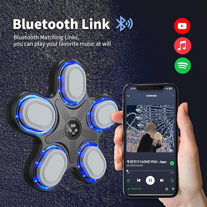 - ๐ถ Digital Boxing Machine: Unleash your fitness fun with our smart boxing machine, merging music and exercise seamlessly. Revamp your fitness routine with our LED punch experience! Sync the music to your phone via bluetooth for a dynamic visual rush.