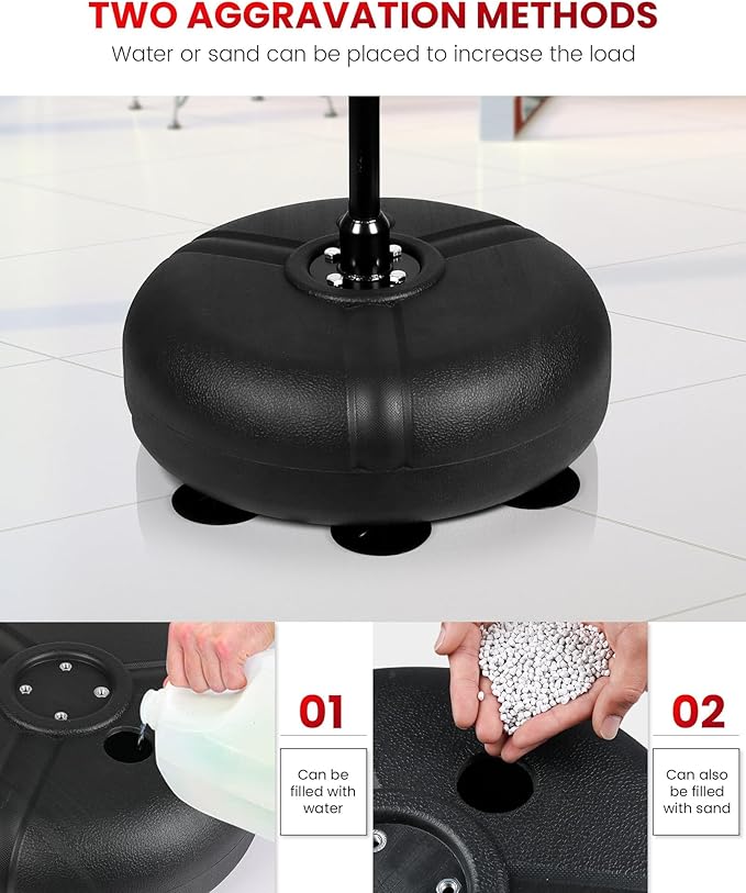 - Stable base: The base comes with a suction cup to strongly adsorb the ground, firmly fixed to the ground. Can adsorb all kinds of smooth ground, wipe the ground with a cloth before adsorption. The base can be filled with water or sand to improve stability