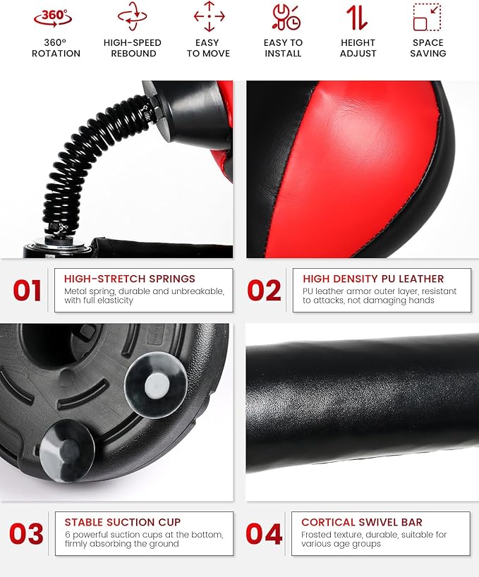 - Complete Boxing Bar Set - The boxing spinning bar set contains everything you need for boxing training, including an inflatable punching ball, a durable base, a swivel shaft, and an inflation pump