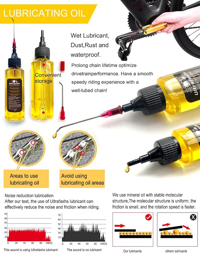 - 【High-Performance Lubricant】Our wet lubricant is dust, rust, and waterproof, providing optimal lubrication in all temperatures and conditions. The dropper design controls the direction of oil flow and minimizes waste.