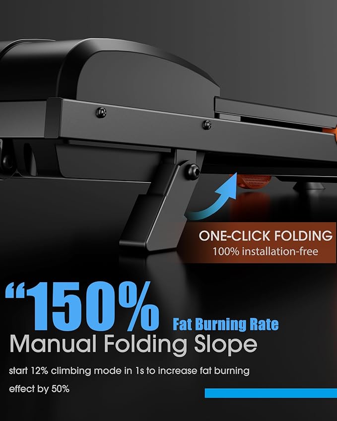 - 【12% Foldable Incline for Max Burn】EVKRUN walking pad treadmill features a 100% installation-free manual FOLDABLE front foot, allowing for a 12% slope to be achieved in just 1 second, simulating hills. It can burn up to 50% more calories, engage more muscles, and raise your heart rate. Letting you power the climb and feel the burn at home or office