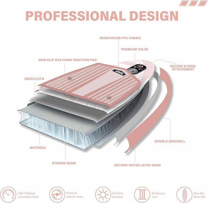 - Premium Accessory Package:Polar Rose collection inflatable paddle board comes with high-quality accessories,including a comfortable kayak seat,waterproof phone bag, double-blade paddle,three detachable fins,convenient backpack, manual pump,cup holder, repair kit(no glue)and ankle safety leash. Everything you need for a fantastic paddling experience is included!