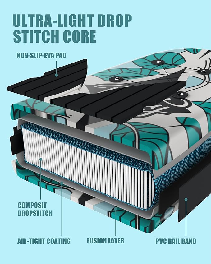 - 【Extra Wide Stable Design 】The inflatable paddle boards standard size is 11’*33”*6”, with weight capacity up to 400 lbs.The extra wide SUP design is easy for beginners to stand up and keep balance.Dixero SUP boards made for all skill levels, providing unrivalled stiffness and stability along with an aesthetic finish so you can show off in performance and style.