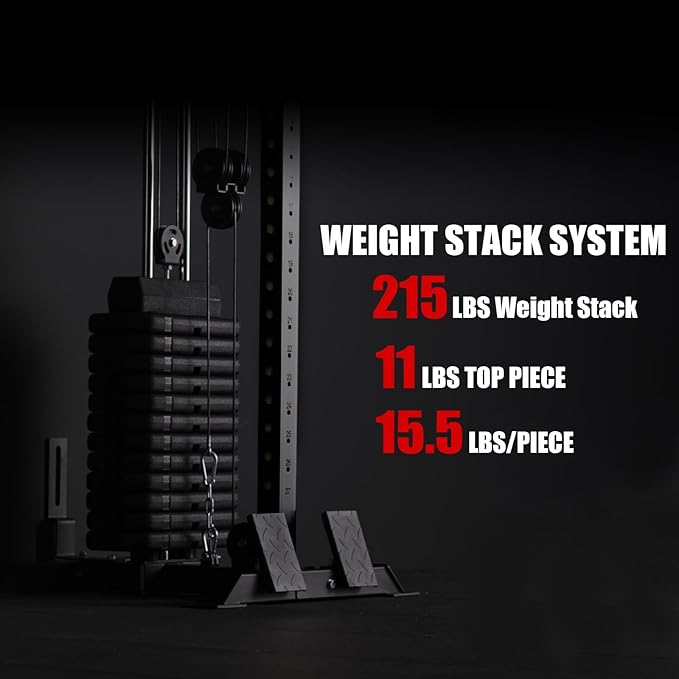- Selectorized Weight Stack: High-end cable tower is equipped weight stack pulley system as opposed to a plate-loaded system. 1:1&2:1 ratio and 195lb weight. Lets you very easily perform drop sets or supersets with virtually no rest between sets. It also means less moving around and handling weights between your sets. It makes you more efficient so you can focus more on actual training instead of preparing to train.