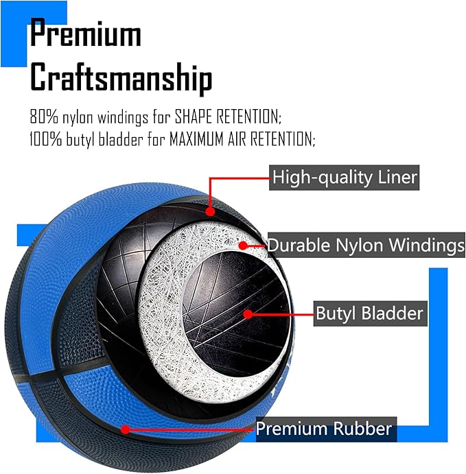 • ★PREMIUM MATERIALS★ Made of premium rubber, which is durable and wear-resistant, and can withstand both indoor and outdoor play, ensuring that you can enjoy the basketball anytime, anywhere.