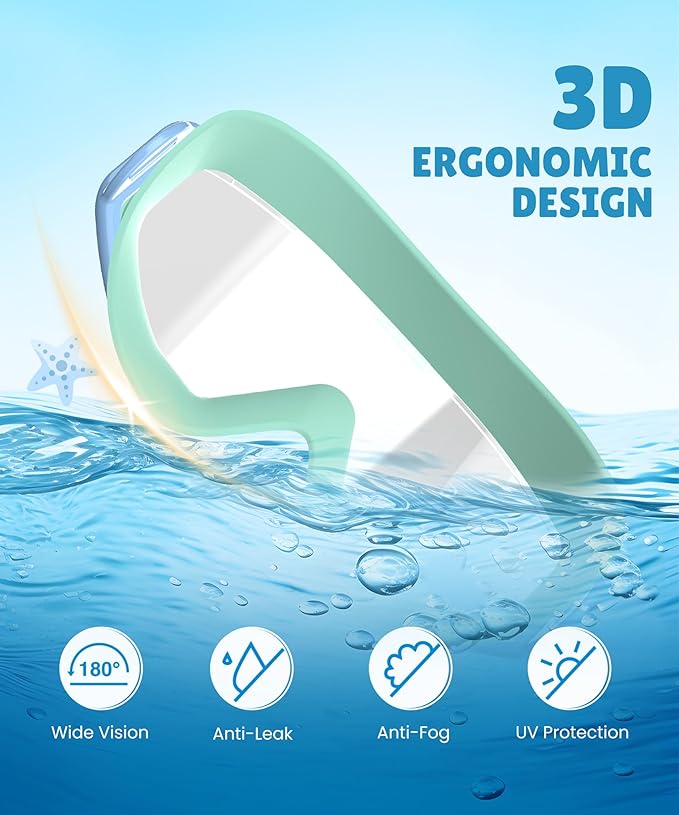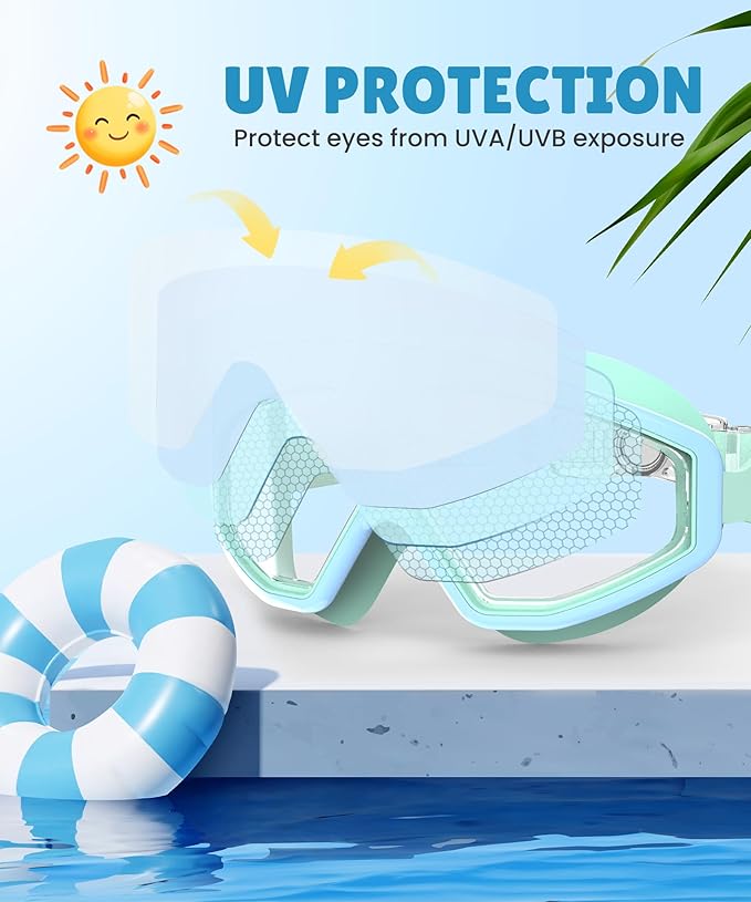 - Clear Vision Underwater: Swimming goggles equipped with anti fog and UV400 protection lenses, our kids goggles offer unparalleled clarity and eye protection. Whether it's a sunny day at the beach or a swimming pool, your child will enjoy a clear view while staying safe from harmful rays. Dive into fun with confidence