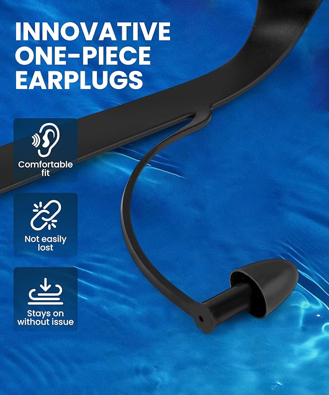 - No-Leak Comfort for Serious Swimmers: The double sealing technology completely blocks the water, and the swim goggles for men are equipped with extra nose clips and earplugs to further prevent leakage, and the anti-slip nose pad can remain stable during strenuous exercise. The adult swim goggles high-quality materials are resistant to chlorine water corrosion, and variety of lens colors are adapted to different lighting environments. Swim longer, swim stronger