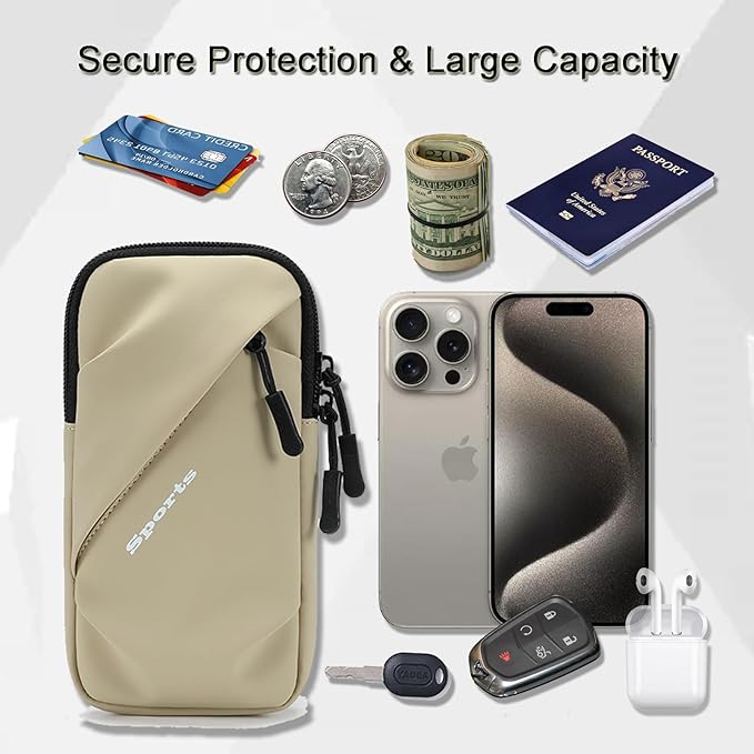 Cell Phone Armbands Running Phone Holder Armband, Phone Holder for Walking, Shoulder Holster Phone Purse Crossbody Bag Phone Pouch (Khaki)