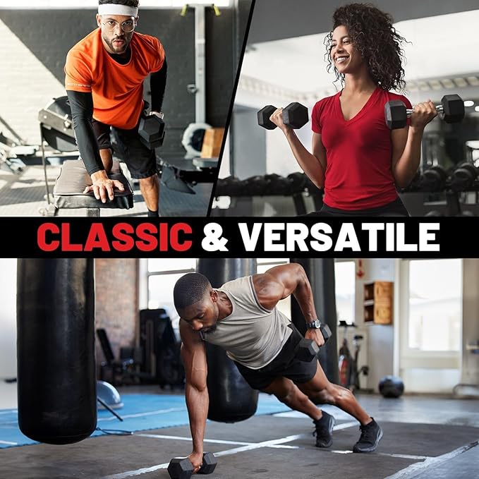 PAPABABE Hex Dumbbell Set 45-550 lb, Rubber Encased Home Gym Dumbbells, Weights Dumbbells for Women & Men, Hand Weight for Strength Training