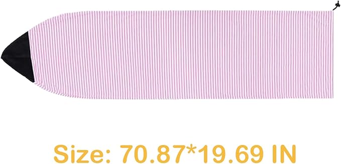 - Reinforced Nose & Tail Protection: Safeguard your board’s delicate nose with heavy-duty reinforcement, while the adjustable drawstring closure ensures a snug fit around the tail—no fin removal required! Stretch fabric allows for quick, hassle-free application and stays securely in place during transport