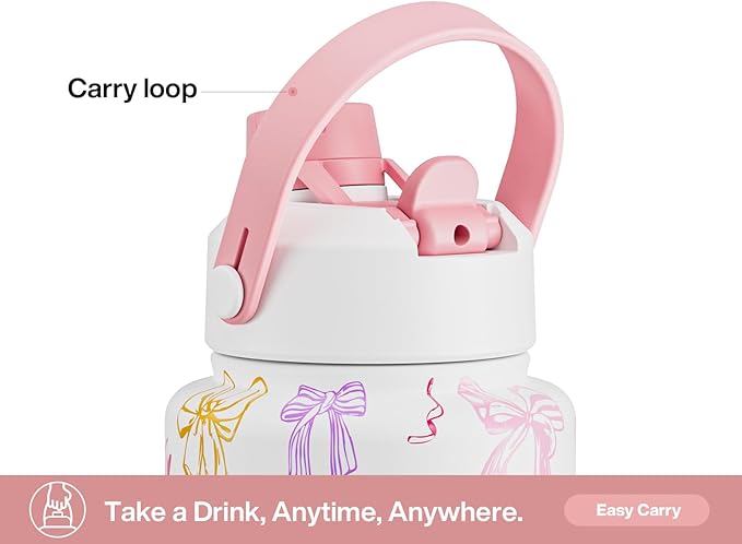 40 oz Insulated Water Bottle with 2-in-1 Straw and Spout Lid, Keep Cold 24H, Leak-Proof, BPA-Free, Double Wall Stainless Steel Water Bottle for Sports, Gym, Travel, and School (Ribbon Whimsy)