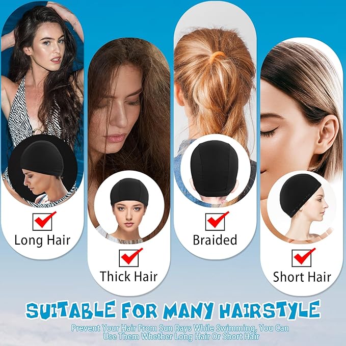 - Protective and Safe: our bathing caps are made of quality polyester fabric, with a smooth surface, soft, breathable and comfortable to wear, nice for avoiding head and hair from sun rays and other harmful materials, while swimming in summer, also applicable to long hair or short hair