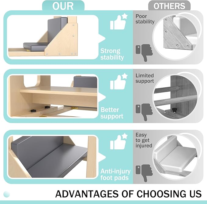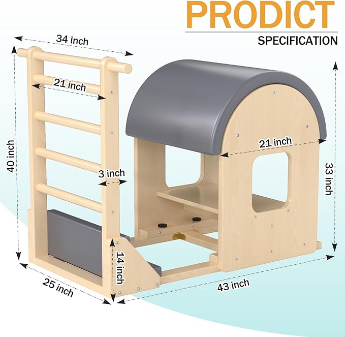 - [Premium Wood Design]: Pilates reformer adoption of Solid wood design allows for home or professional use. Equipped with specific leather, which is tear-resistant, wear-resistant, anti-aging, breathable, and not stuffy. The high-density EVA foam padded inside leather, is moderately soft and hard. Making your workout comfortable.