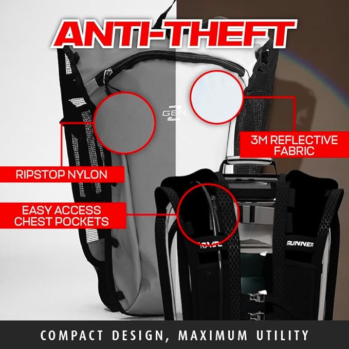 - ANTI-THEFT DUAL CHEST POCKETS Front-access pockets let you stash essentials—like snacks, cards, or gels—without exposing your main compartment. Secure. Smart. Festival-friendly.