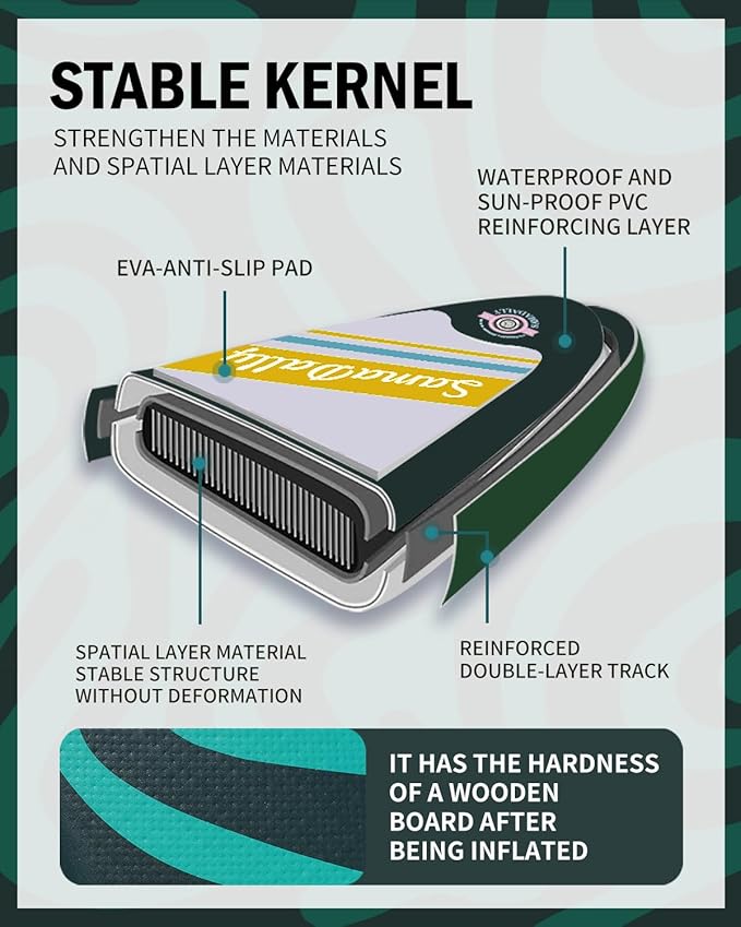 - Convenient & Practical: SamaDally inflatable sup board is equipped with traditional reinforced 2 handles, distributed in the middle and tail. 10 D-rings on the whole body can fix other equipment for you, and there are four D-rings in the middle to place kayak seats. A variety of usage methods add more practicality and use space to meet different needs.