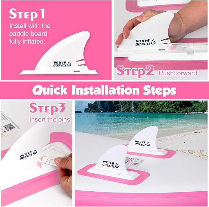 - 5.【Complete SUP Accessories】This Tuxedo Sailor paddle board set includes a adjustable single-blade paddle, manual pump, fins, leash, and backpack, giving you everything needed for a perfect paddleboarding experience.