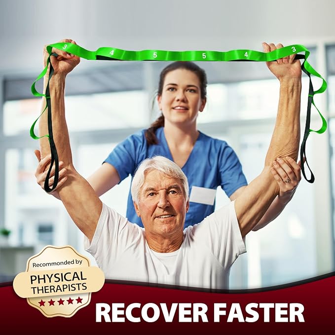 - ENHANCE YOUR WELL-BEING – Achieve deeper stretches safely and effortlessly with our premium stretch strap. Featuring adjustable loops and ultra-comfortable neoprene handles, this versatile tool supports proper posture during yoga or flexibility training while protecting your hands and feet. Designed to refine your stretching techniques and amplify your yoga practice, it helps revitalize both your body's agility and youthful appearance