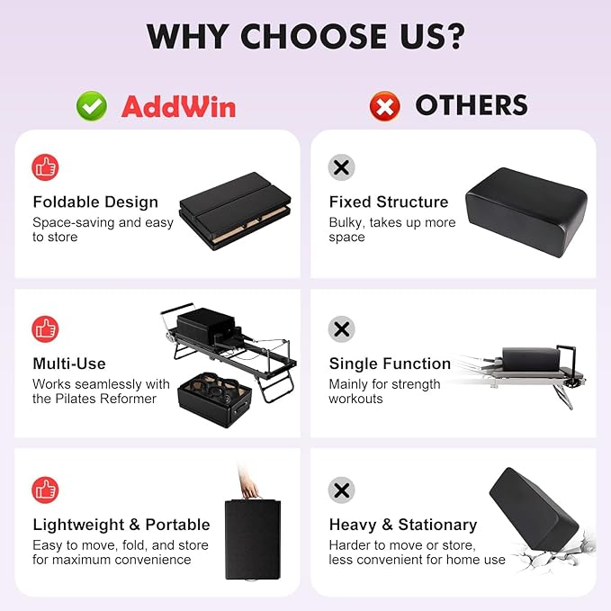 - 【Ideal for Home or Studio Workouts】With its space-saving foldable design and high-quality build, this Pilates box is perfect for both home and studio settings. It provides a professional Pilates experience wherever you choose to exercise, helping you build strength, improve flexibility, and achieve a full-body workout