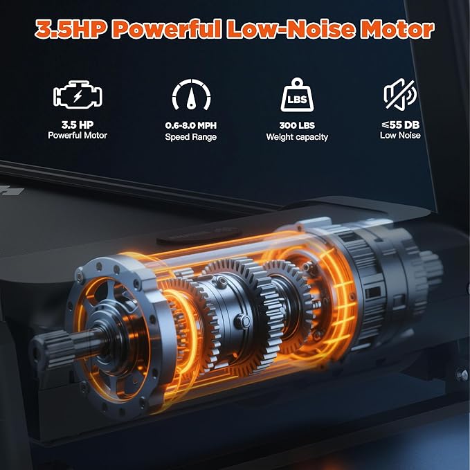 - Powerful 3.5 HP Motor: Equipped with a high-performance 3.0 HP motor, this treadmills for home can provide sufficient and lasting power for your workouts effortlessly, supporting a speed range of 0.6-8.7mph. The motor operates quietly, allowing you to exercise whenever you want, even at night, without worrying about disturbing others in your home.