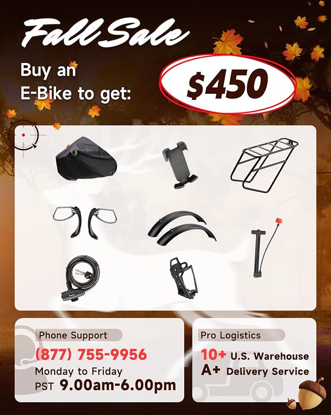 - 【48V 20Ah Battery & Ride Gift】Removable hidden battery with 54V 2A fast charger (6-8 hours). Torque-based energy compensation delivers 40–80 miles (pedal-assist mode), range varies with terrain, ride mode, weather, weight, and battery level. Included luxury pack for a better riding experience: Air pump, lock, rear rack, fender, phone mount, bottle holder, cover, and rearview mirrors!