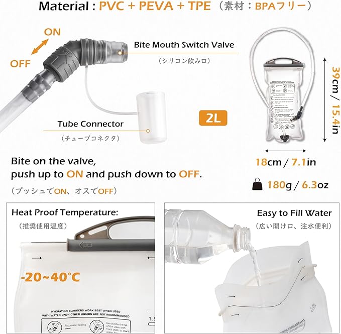 - Water Supplement: 2L BPA-free water bladder equipped, pressure-tolerant and leak proof. Drinking water by the tube directly whenever you need without taking your running vest off or stopping your steps. Convenient trail running backpack outfit