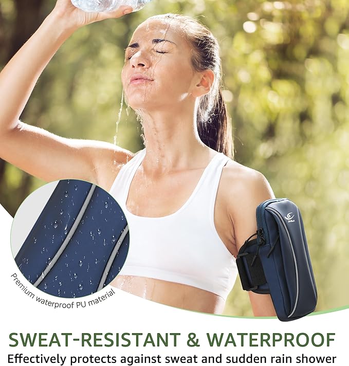 - Sweat-Resistant & Waterproof Material: Stay active in any weather! Made from premium waterproof PU, this armband protects your belongings against sweat and unexpected rain showers, ensuring your phone and valuables stay dry and secure.