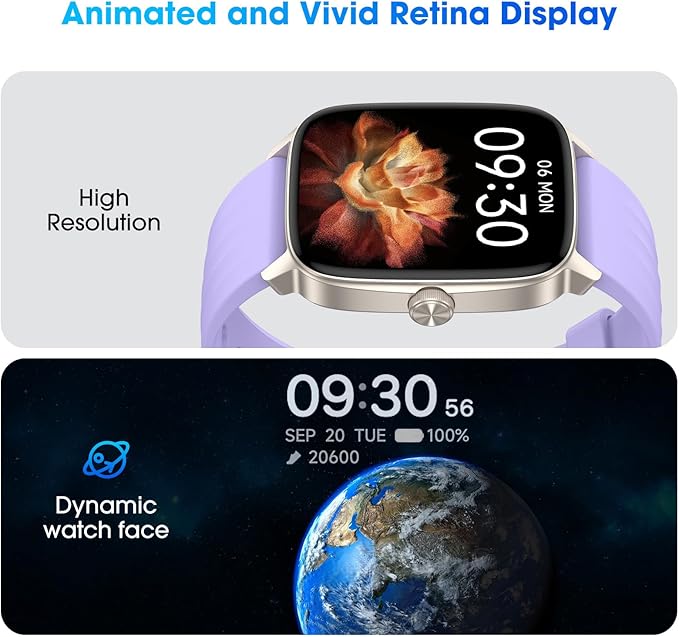 - Large Clear Display & Customizable Watch Dials: This smartwatch features a large LCD color display, more clear to view and easier to operate on watch, especially friendly for both elderly! There are 5 built-in dials available without App. If paired with APP, there are cloud watch faces and customize exclusive dials.