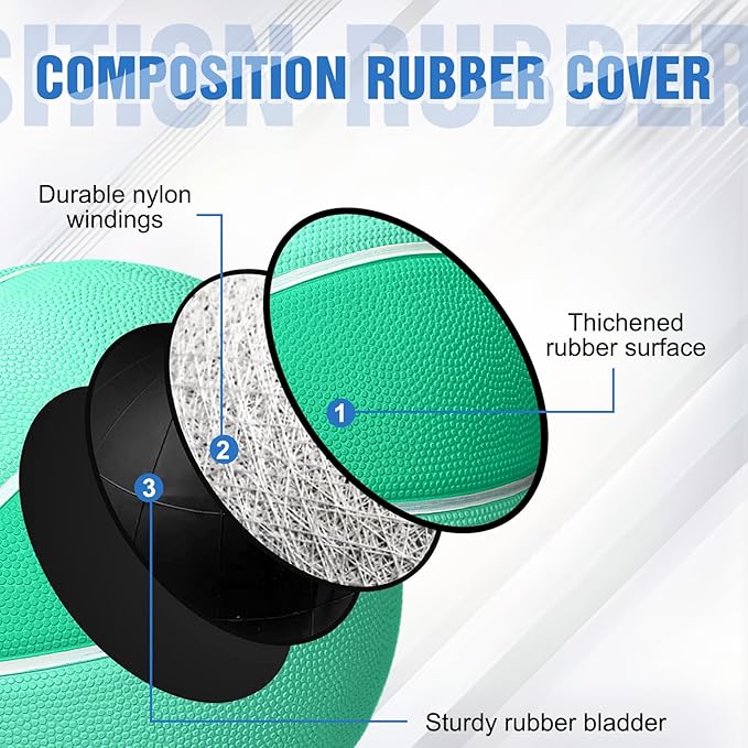 - Fine Touch and Control: the indoor basketballs are made from reliable rubber, wear resistant and soft; Each ball is equipped with a yarn wound bladder as standard, not easy to leak; The ball surface has small grains and deep channels, which provide better grip and good bounce passes; Quality material brings you the fine touch