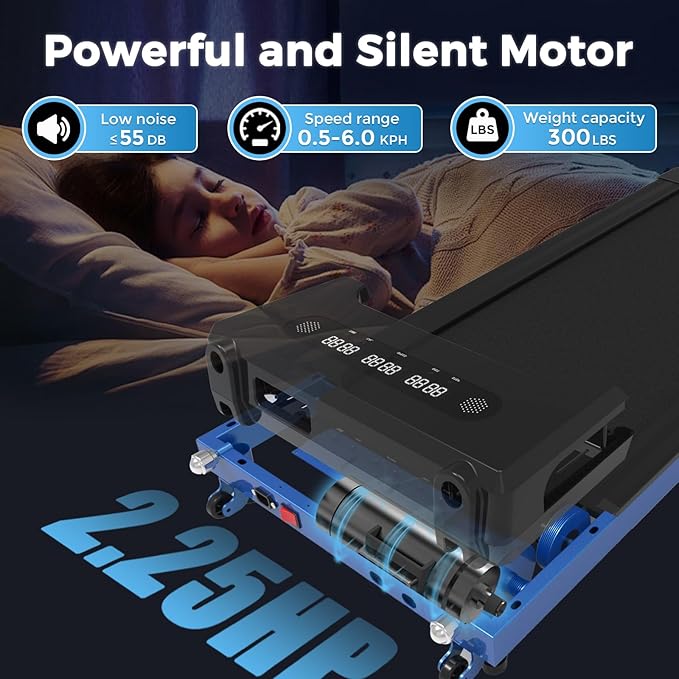 - LED Display Screen and Easy Remote Control: The LED display screen is clear and easy to read, allowing you to easily view exercise time, calories, steps, speed, and distance while exercising. The remote control operation is convenient, allowing you to easily control the walking pad treadmill.