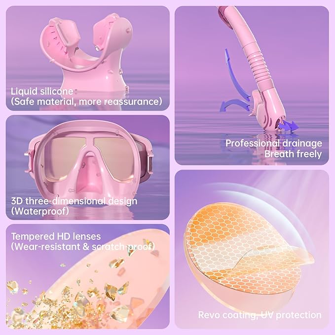 - Premium Materials for Comfort & Longevity-The silicone skirt edge of the face mirror is made of food grade liquid silicone, which is soft and skin friendly, closely adheres to the facial contour, has excellent waterproof sealing performance, effectively prevents water leakage, and reduces facial pressure, caring for the skin. The breathing tube is also made of high-quality silicone for the mouthpiece, which is safe, non-toxic, and comfortable to bite.
