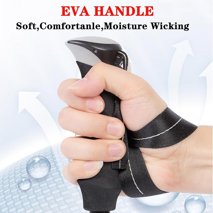 • BUILT FOR YOUR COMFORT-Trekking pole can improves your balance, security, stability and endurance, keeping you in perfect physical condition, give you confidence to reach your yearning destination