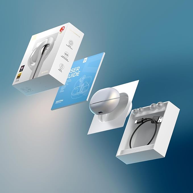 - 【Wind-noise Resistance and 6 Mics cVc 8.0 AI Call】 With advanced AI Qualcomm cVc 8.0 tech, SOUNDPEATS Air5 Pro noise cancelling earbuds could ruduce 90% background noise. Enjoy crystal-clear calls regardless of where you are.