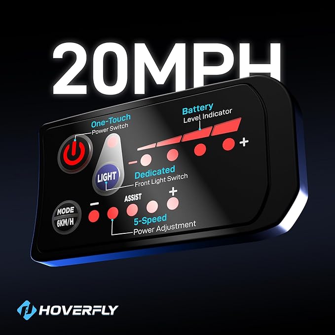 - 【750W Powerful Motor for All-Terrain Riding】The HOVERFLY 750W electric bike reaches speeds over 20 MPH, making it perfect for mountain, trails, city commuting, and even snow. This all-terrain e-bike easily handles hills and rough roads, offering a smooth, safe, and powerful ride. A great gift idea for outdoor lovers and everyday riders alike!