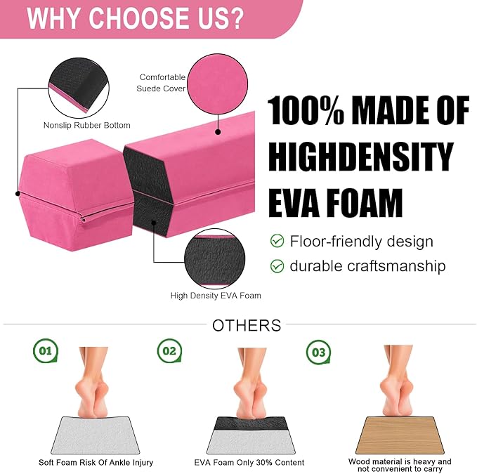 • PRO-GRADE KIDS BALANCE BEAM: Designed with a 4-inch competition-width surface for authentic beam practice. Perfect for handstands, cartwheels, jumps, leaps, and balance drills at home, gyms, parks, or cheerleading sessions.