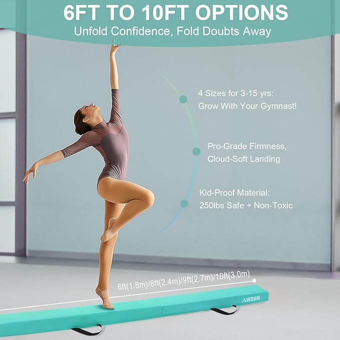 • 4 SIZES + VIBRANT COLORS Inspire young athletes with dopamine hues! Safety built for toddler to teen, choose from 6ft (1.8m)/8ft (2.4m)/9ft (2.7m)/10ft (3m) beams for ages 3-15+.