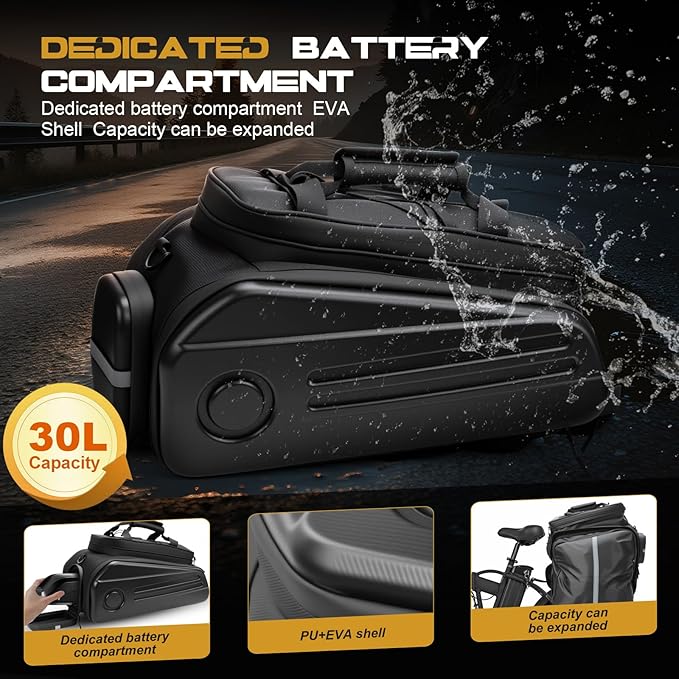 Bike Rack Bags, Hard Shell E Bike 30L Rear Rack Bag, Large Ebike Pannier with Waterproof Cover and Shoulder Strap for Commuter Travel Outdoor