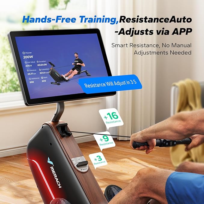 - Stay in the Flow, No Interruptions: Easily adjust 16 resistance levels with a button on the handle—no stopping or bending down. MERACH App support lets your class guide the intensity for you.