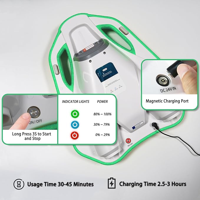 - Large-capacity battery: Electric swimming Pool Float has a built-in 24V/4.6Ah battery, with a comprehensive battery life of up to 45 minutes and a charging time of only 2.5-3 hours.