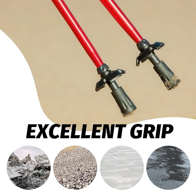 - The concave-convex base of the trekking pole cap provides excellent traction, stability, and shock absorption, reducing joint stress and making hiking more comfortable.