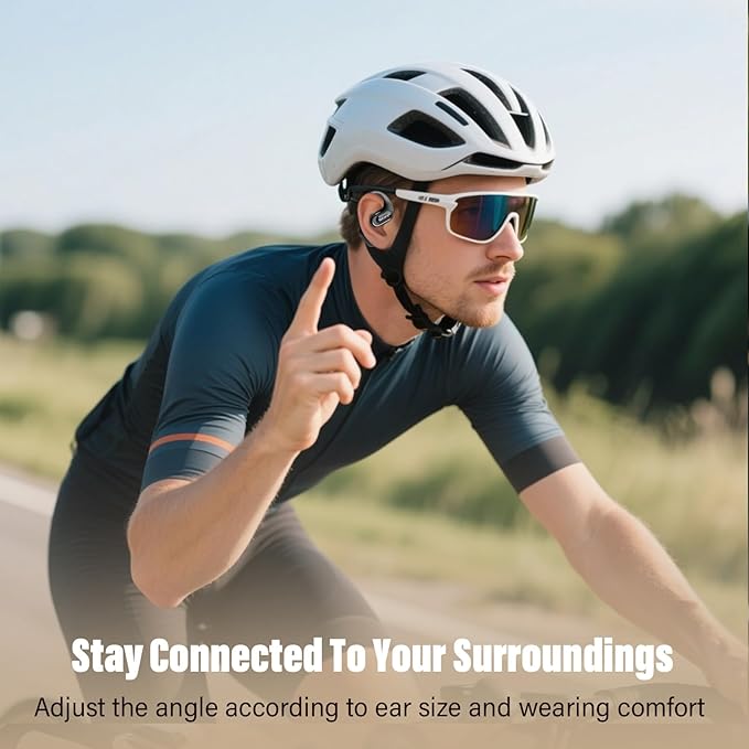 - Maintain Situational Awareness and Safety: Our open ear earbuds are designed to sit outside your ears, allowing you to stay aware of your surroundings at all times. Whether you're running or cycling outdoors, you can enjoy your music while still hearing approaching cars or other potential hazards, helping you stay safe throughout the day.